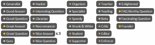 مدال ها: مدارک و شواهد از دستاوردهای کاربر می باشد که شاخص موفقیت یا تسلط بر مهارت به خصوص در درون جامعه ای است که درک مناسبی از ارزش خود را دارند. مدال ها اغلب برای شناسایی مهارت ها در یک گروه بکار برده می شوند. به عنوان مثال در شبکه اجتماعی stackoverflow که هدف اصلی آن آموزش است با توجه به سوالات مطرح شده از طرف کاربر و همچنین جواب هایی که به سوال دیگران می دهد و امتیازی که دریافت کرده با منطق های خاصی مدال های زیر اعتا می گردد. حال اگر عضو آن شبکه باشید با دیدن مدال های کاربران متوجه مهارت های آنها می گردید.